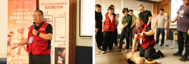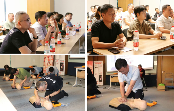 在实操环节,老师现场示范了标准的心肺复苏术、自动体外除颤仪(AED)使用的重要技能。参训员工踊跃参与模拟练习,老师耐心指导、逐一纠正操作细节,确保大家掌握规范动作和科学流程。通过反复演练和互动答疑,员工们不仅巩固了知识,更在实操中提升了应对突发情况的信心与能力。