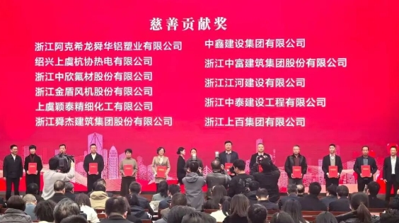 12月23日下午,上虞区慈善总会“爱的奉献·善行上虞”第五轮帮扶助困慈善冠名基金启动仪式隆重举行。集团公司凭借长期以来对慈善事业的持续奉献与突出贡献,被授予“慈善贡献奖”。