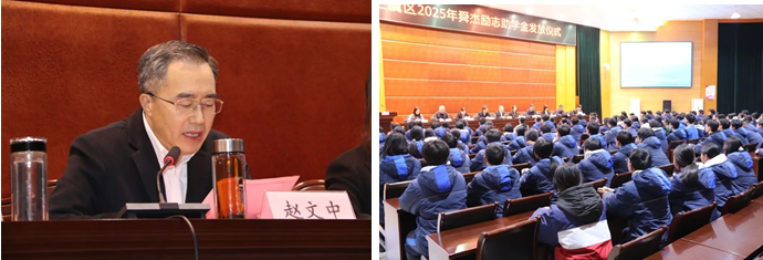 致辞中,赵文中主任对同学们提出三点殷切希望:一要励学敦行,做不负时代的奋斗者,将社会关爱转化为求知动力,坚持学以致用;二要厚德弘毅,做勇担使命的追梦者,秉持“工匠”精神,将个人理想嵌入家乡发展的经纬;三要知恩感恩,做爱心传递的接力者,永怀感恩之心,在未来以实际行动回报社会、情系桑梓。