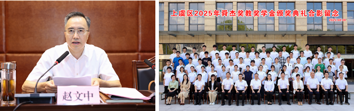 由集团公司捐资设立的“舜杰奖教奖学基金”,自1994年创立以来,已走过三十余载春秋。它如同一束明亮的灯塔,激励着全区教师潜心耕耘,照亮了无数学子奋勇前行的道路,为家乡发展和国家建设输送了源源不断的后备力量。每一年的此刻更像是面向未来的集结号角,它凝聚着区委区政府、爱心企业与整个社会尊师重教、重视人才的共识。这坚实的共识,必将进一步激发全区师生见贤思齐、拼搏进取,在时代的浪潮中奋勇搏击,共同书写属于上虞教育的新辉煌篇章!