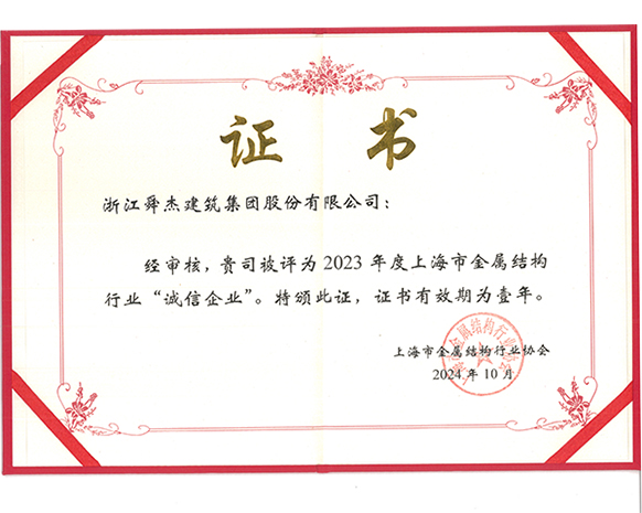上海市金属结构行业诚信企业